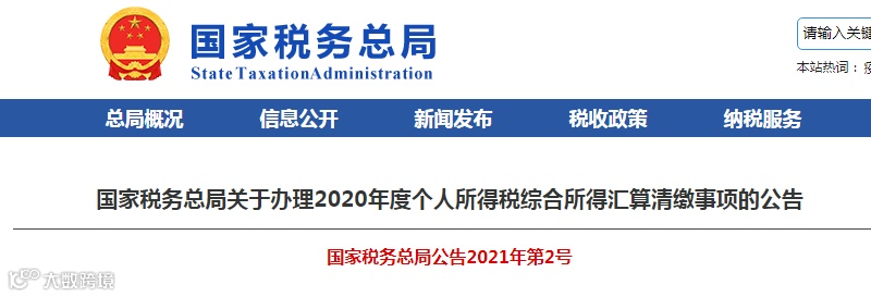 国家税务总局已经发布公告了,规定相关纳税人需要在2021年3月1日至6月30日办理2020年度个税综合所得汇算清缴👇