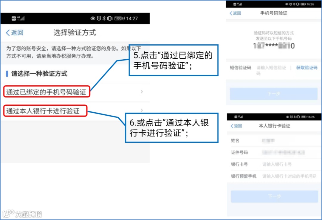 可选择“通过已绑定的手机号码验证”或“通过本人银行卡进行验证”任意一种方式进行验证。