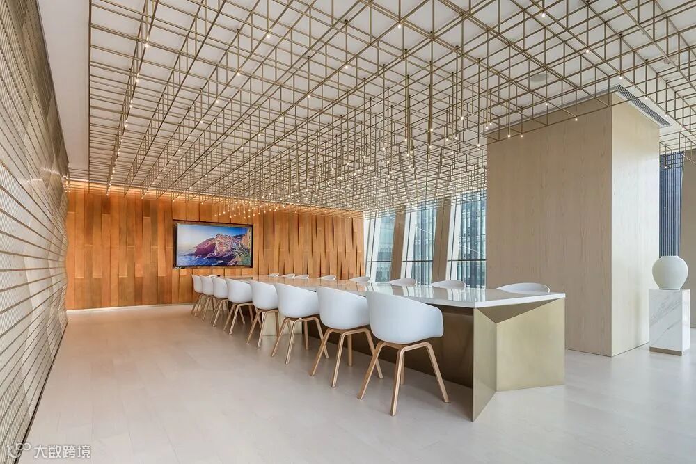 项目室内设计亦融合了外部造型的设计元素,在大堂内墙处理上对干挂金属板采用了与外立面相同的折线处理,使内与外和谐统一。在辅楼中庭的处理上,更是充分体现了内与外的巧妙呼应,整个中庭四周通过金属隔珊折线向上,形成了一个与外立面造型相呼应的节奏感,使整个空间由外而内,由内及外。