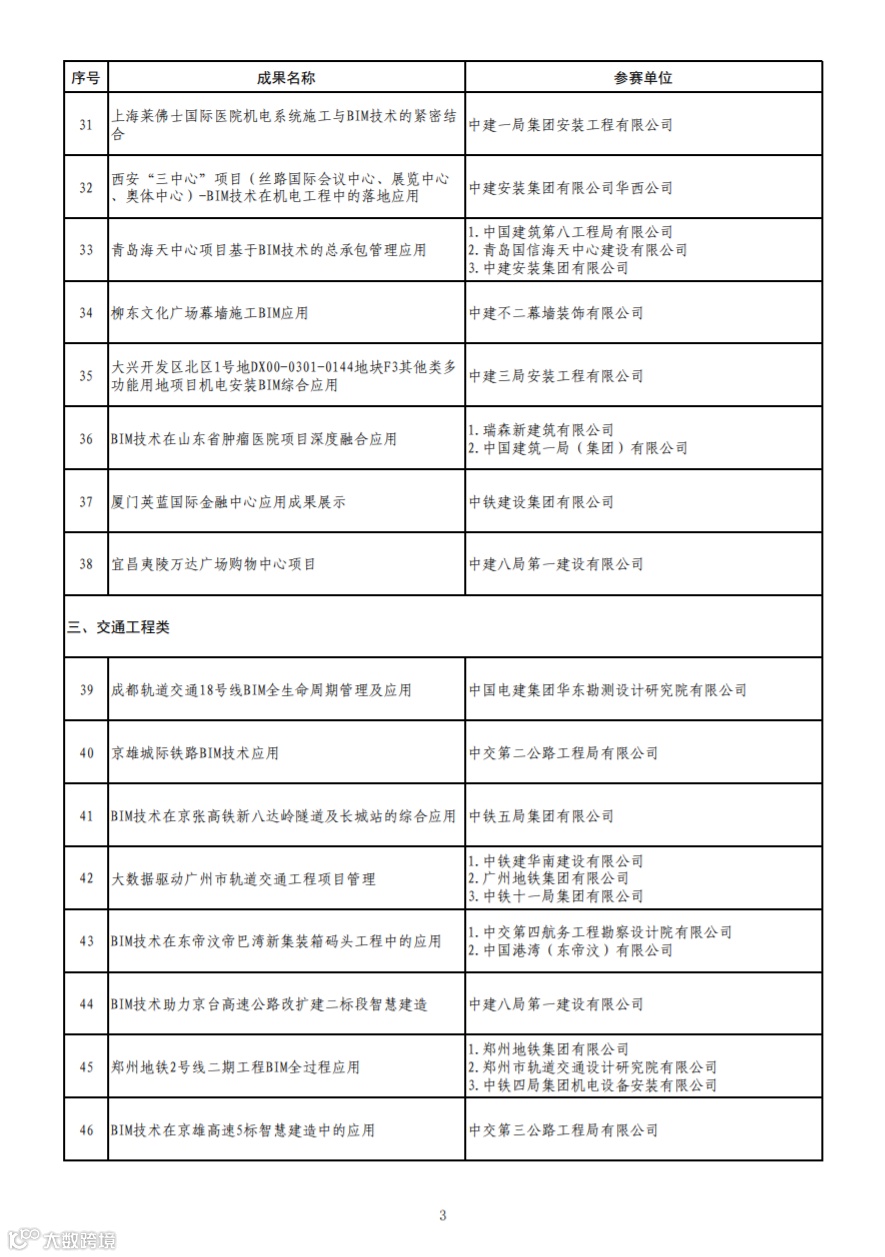 关于首届工程建设行业BIM大赛结果的公示