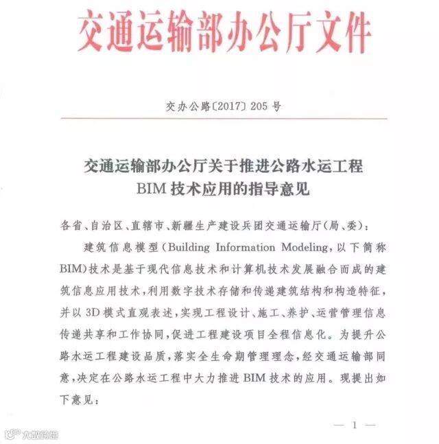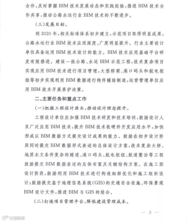 近日,交通运输部公路局对各省(自治区、直辖市)交通运输厅(局、委)等单位发布了《关于推进公路水运工程应用BIM技术的指导意见》,征求各单位意见(见附图)。