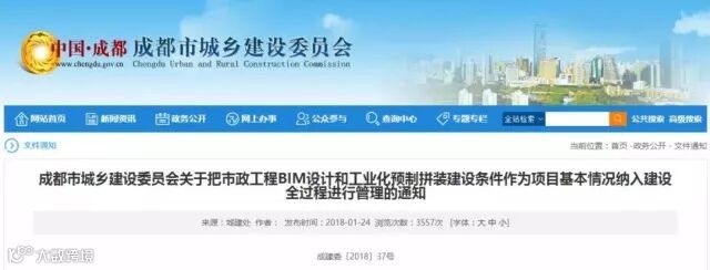 为落实《成都市人民政府关于加快推进装配式建设工程发展的意见》(成府发〔2016〕16号)和市建委《关于印发<成都市市政基础设施建设推进工业化生产和装配式绿色施工行动计划(2017年-2019年)>的通知》(成建委〔2017〕217号),确保市政工程道路、隧道、桥梁、轨道交通、地下综合管廊等项目中采用BIM设计、按照工业化生产和装配式施工建设条件进行建设,现就相关工作通知如下:
