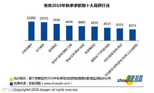 智联招聘在线数据显示,重庆地区2018年秋求职期的平均薪酬为7424元,在全国37个主要城市的薪酬水平中排名第十二位,薪酬水平及排名均有所上升。