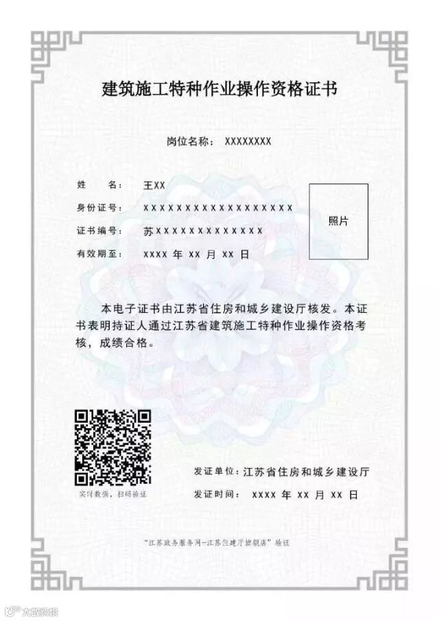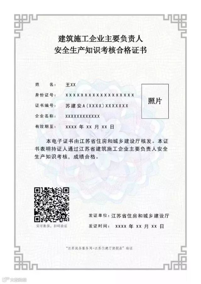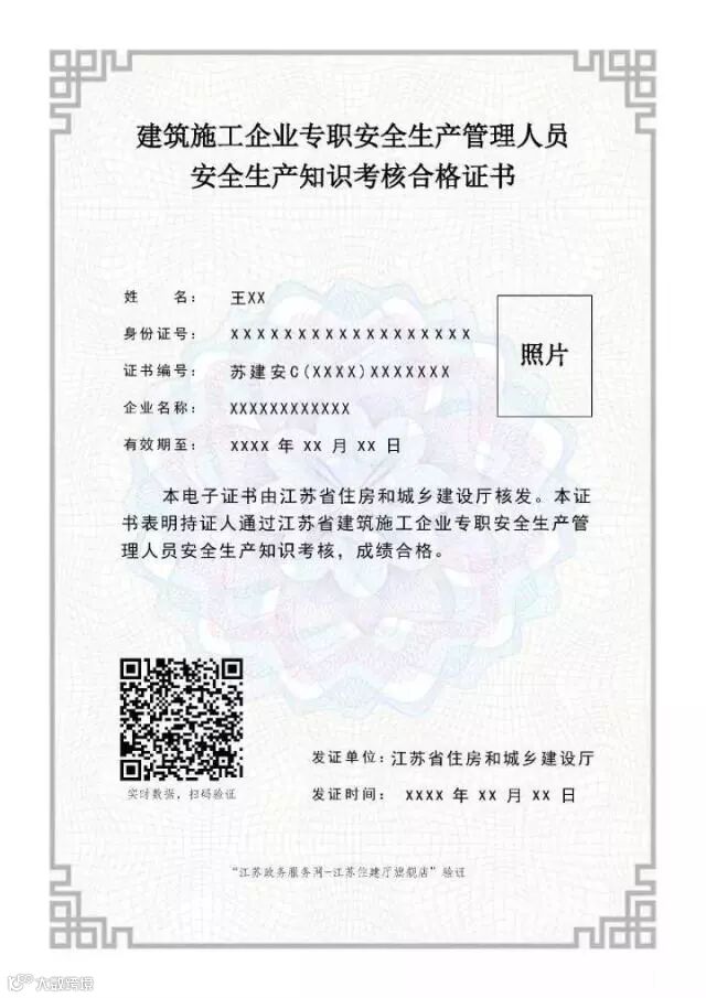根据江苏省人力资源和社会保障厅等部门公布的《江苏省涉企培训考证目录清单》,此次电子证书发放范围包括:住房城乡建设领域专业人员岗位培训考核合格证书(以下简称“现场管理人员”合格证书),建筑施工企业主要负责人、项目负责人和专职安全生产管理人员安全生产考核合格证书(以下简称“安管人员”合格证书),建筑施工特种作业操作资格证书(以下简称“特种作业人员”操作资格证书)。