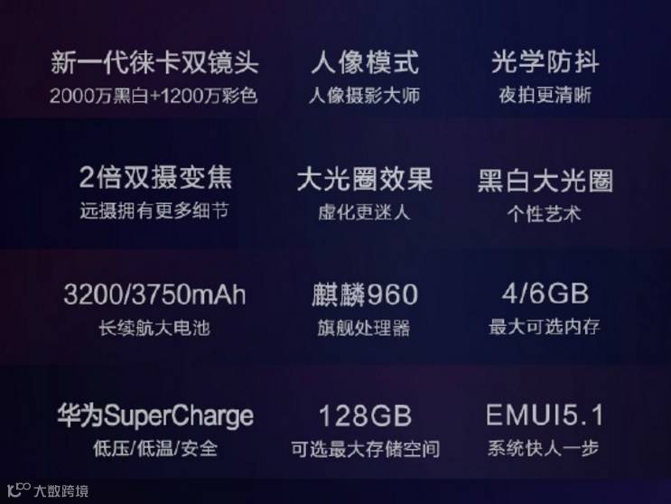麒麟 960 旗舰处理器,6+128GB 内存,2K 显示屏;