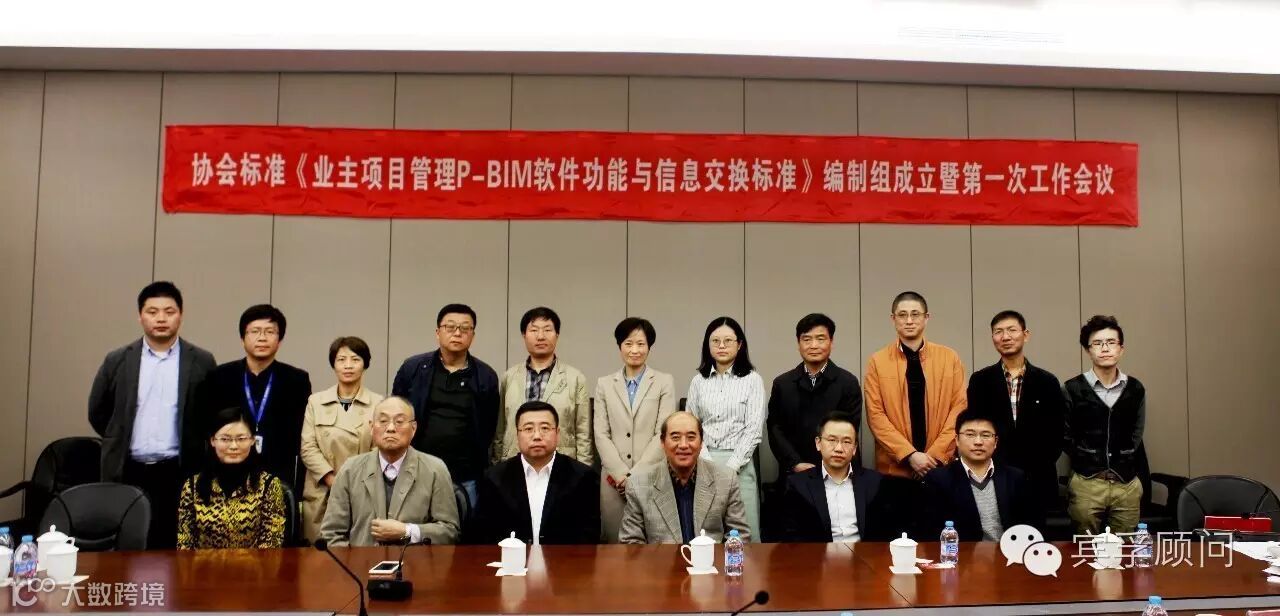 2016年11月9日,《业主项目管理P-BIM软件功能与信息交换标准》编制组成立暨第一次工作会议在上海召开。中国BIM发展联盟黄强理事长、上海城投置地(集团)有限公司胡剑虹常务副总经理、上海宾孚建设工程顾问有限公司翟超首席顾问出席了会议。《标准》编制组和来自全国九家参编单位的近二十位专家参加了会议。