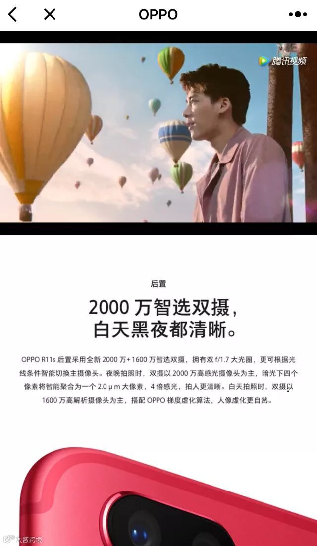 OPPO R11s,让你的照片更清晰明亮,后置2000万+1600万智选双摄、前置2000万AI智慧美颜,随手也能出“大片”。