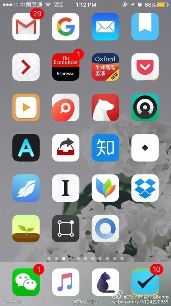 2、回到主页,上滑出控制中心后松手,然后按住控制中心上滑,不要松手的状态下按下Home键。这时你会发现控制中心闪一下消失,Dock上的图标名字都没了。