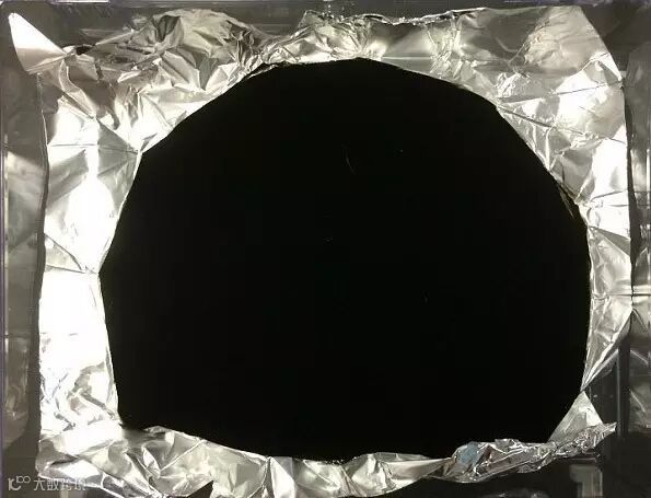 这货的反射率不到50ppm,长在别的东西上之后,所有的光学信号就都被吞掉了(不恰当的,类似黑洞),只能看到这里有个洞,看不到它的形状(下图的中间部分也是有类似边缘的褶皱的,但是你就是看不见~~