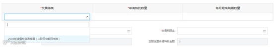 3. 下拉列表带出纳税人已核定的发票种类,选择申请超限量领购发票的种类;填写申请特批发票数量;“每月最高购票数量”根据纳税人选择的发票种类自动带出。