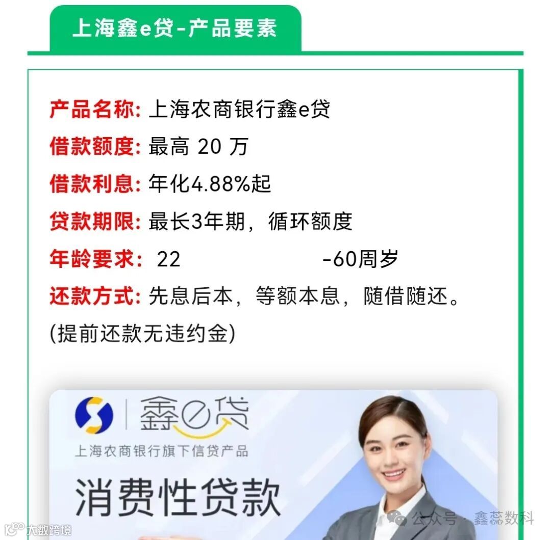 【上海农商鑫e贷】全国线上放款最高20 万年化 4.88% 拉白操作产品大纲及申请流程