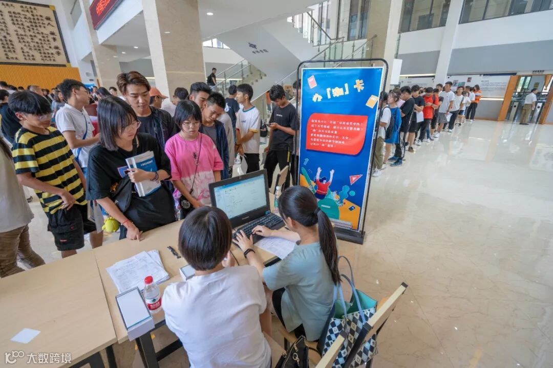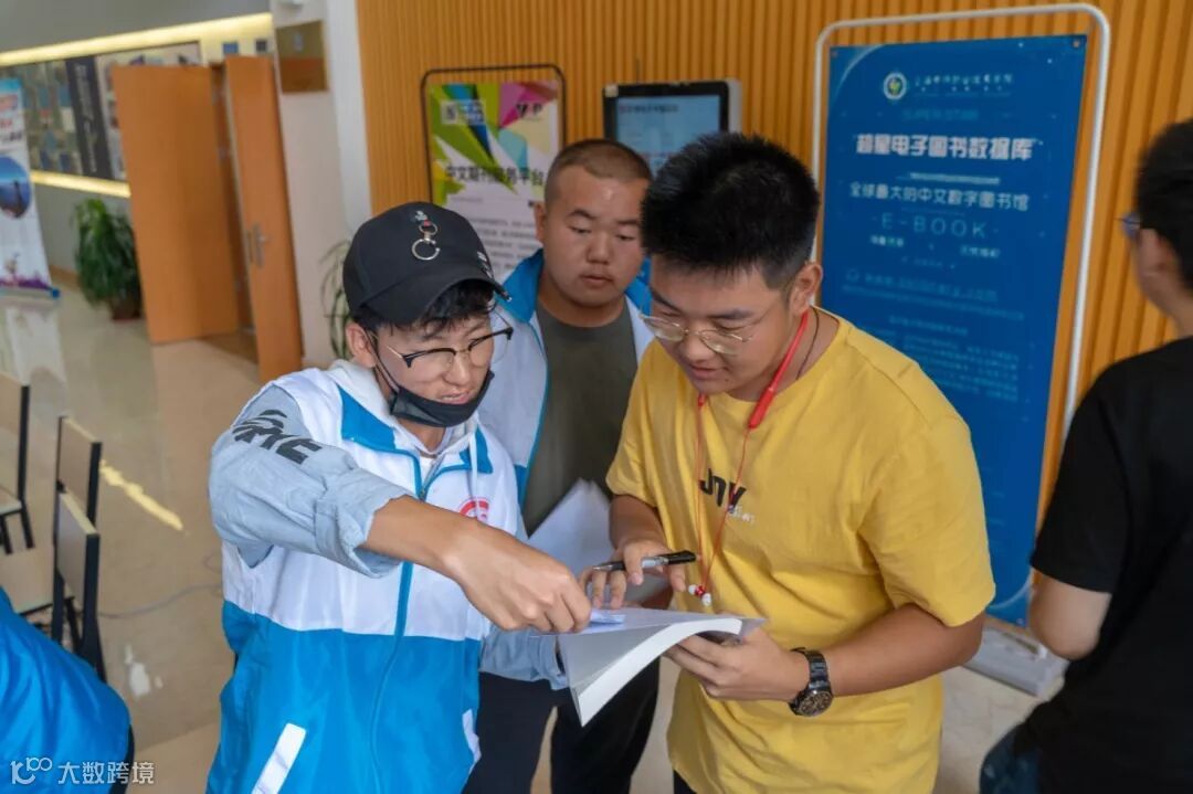 从中午12点起行政楼大厅内就排起了长龙,学生们一边排队一边向工作人员咨询如何利用图书馆的馆藏资源。