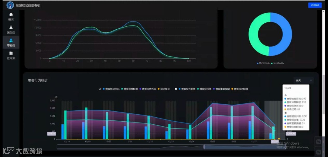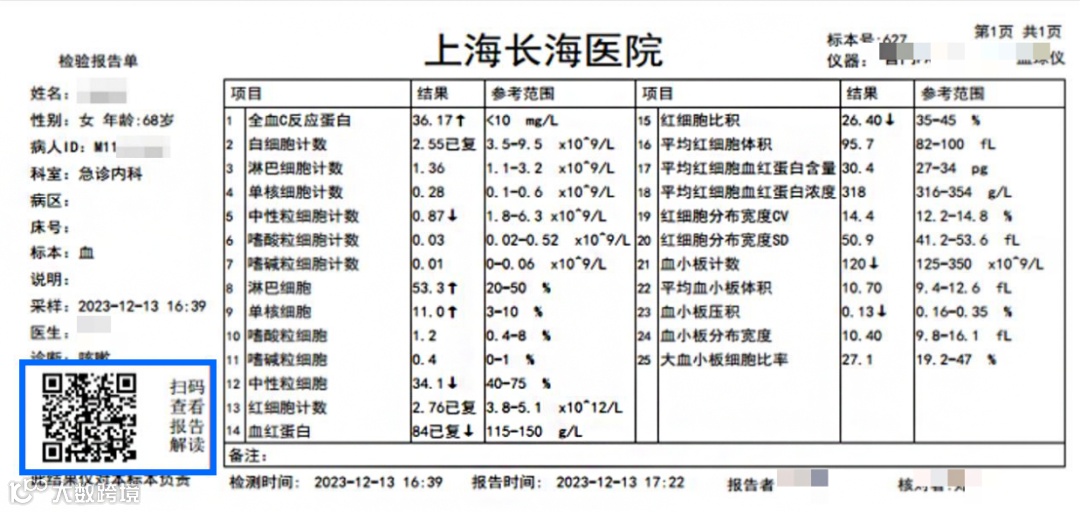 自2023年12月14日长海医院上线患者端智慧服务以来,截止到2024年1月2日,平台总使用近60万人次,其中报告单查询约54万人次,其他操作(如查看异常解读、检验百科等)达到近5万人次。患者仅需通过简单的扫码,就可以在线查看化验报告及进行异常指标解读,第一时间了解自己的健康情况。实现线上、线下一体化的检验闭环服务,让患者更全面地了解自己的病情,解开疑问、减少焦虑,有助于医患更好的沟通交流。