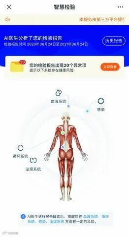 林海岩表示,“智慧检验”项目不仅是一个简单的医学知识查询功能,更重要的是,能够通过AI综合每一项检验结果分析,给予用户充分的检验和疾病知识,使他们对就医方向有更清晰的认识。