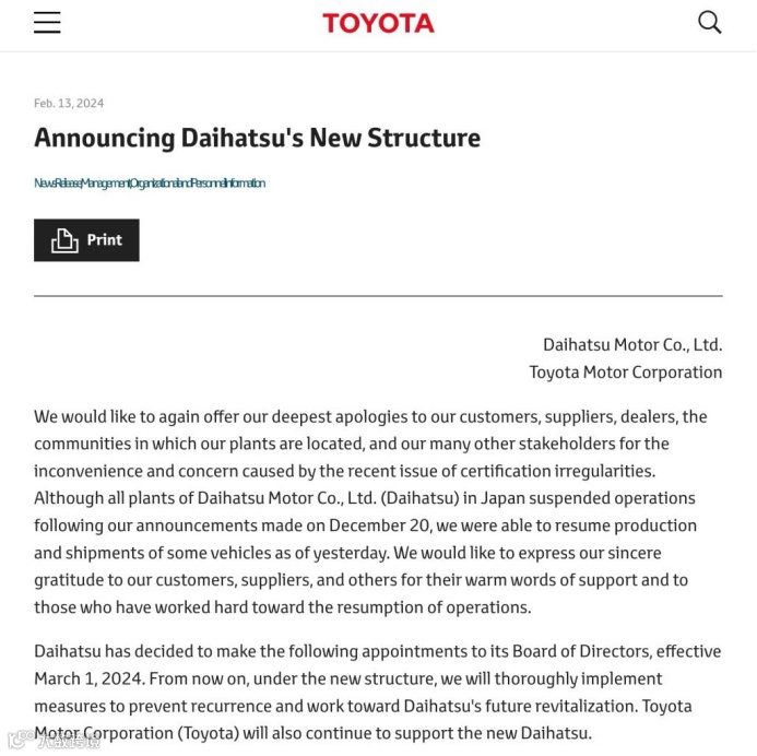 当然,大发汽车总裁和董事长即将双双辞职一事,与早前被曝出的造假风波有一定关联。长达34年的造假历史,174项违规操作,补偿423家供应商,丰田全资子公司大发汽车造假丑闻的影响,还在继续。