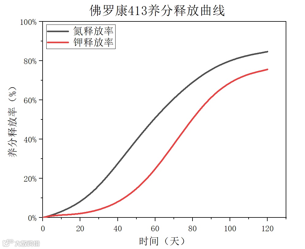 对于佛罗康413号的养分释放,以氮肥为例,在30天后,养分开始加速释放,此时西红柿进入开花坐果期,需要吸收较多氮肥,此款控释肥便能在此时期持续地提供大量氮肥,保障作物的营养生长;以钾肥为例,在约60天后,养分进入加速释放阶段速,此时西红柿处于生长发育的后期,钾肥的充足能保证作物的膨果效果,此款控释肥在此阶段能持续提供足量钾肥,保证了果实的品质。