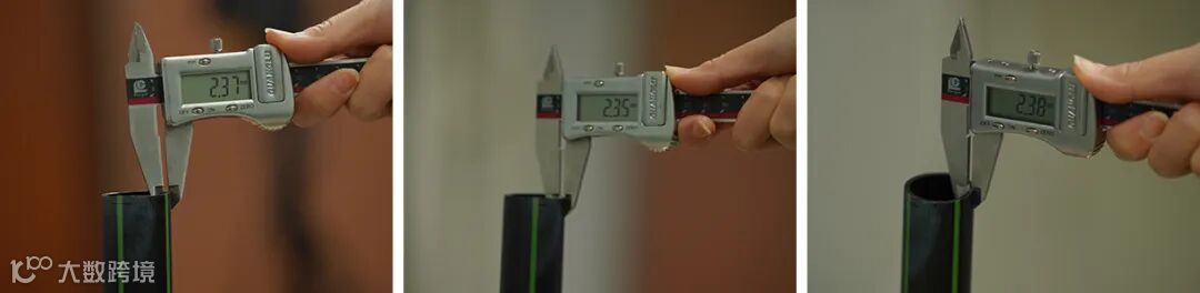 从多个位置测量管材厚度,分别得到数值2.38mm,2.37mm和2.35mm,数值偏差不超过0.03mm,产品质量稳定。