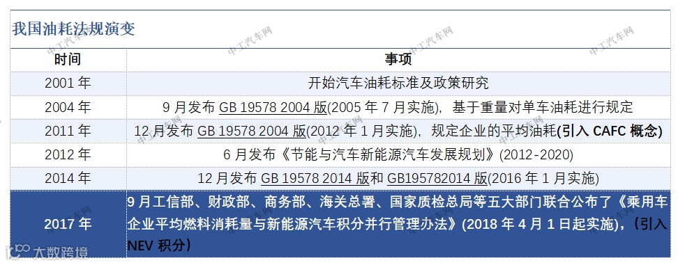 2017年9月,工信部联合商务部、财政部、质检总局、海关总署四大部门,发布了一套乘用车生产、销售以及能耗管理的办法,在汽车厂商实施燃油消耗量积分考核的基础上,增加了新能源汽车的积分考核。