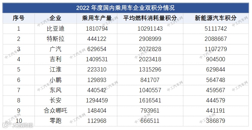 2022年,比亚迪和特斯拉成为新能源汽车正积分的特大户。其中,比亚迪的新能源汽车正积分为511.2万分,特斯拉的新能源汽车正积分为208.9万分,两家企业就占了2022年全年市场整体新能源汽车正积分的半壁江山。