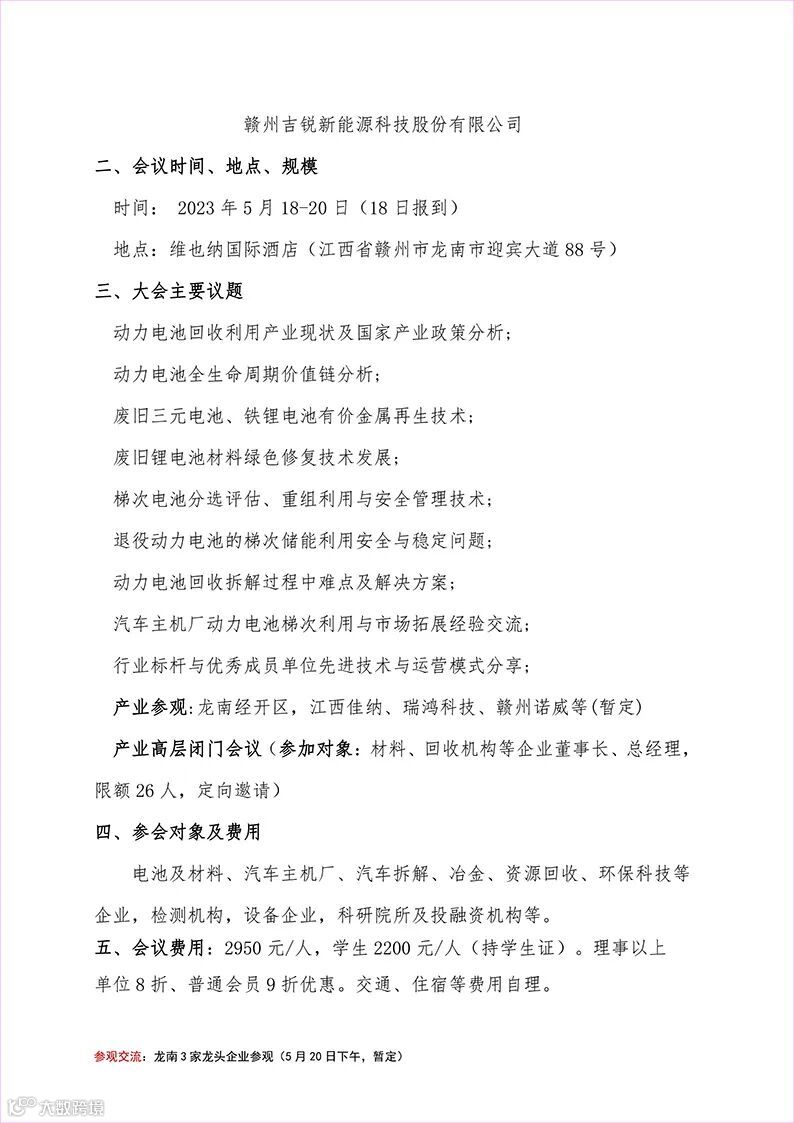 第八届动力电池回收利用高峰论坛邀请函