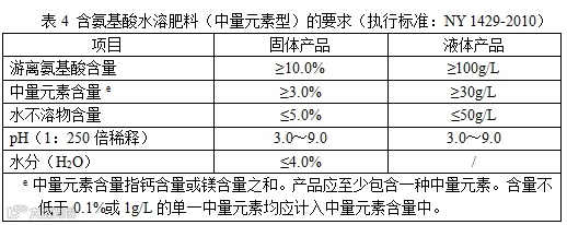 以游离氨基酸为主体,按植物生长所需比例,添加以铜、铁、锰、锌、硼、钼微量元素或钙、镁中量元素制成的液体或固体水溶肥料,产品分微量元素型和钙元素型两种类型。