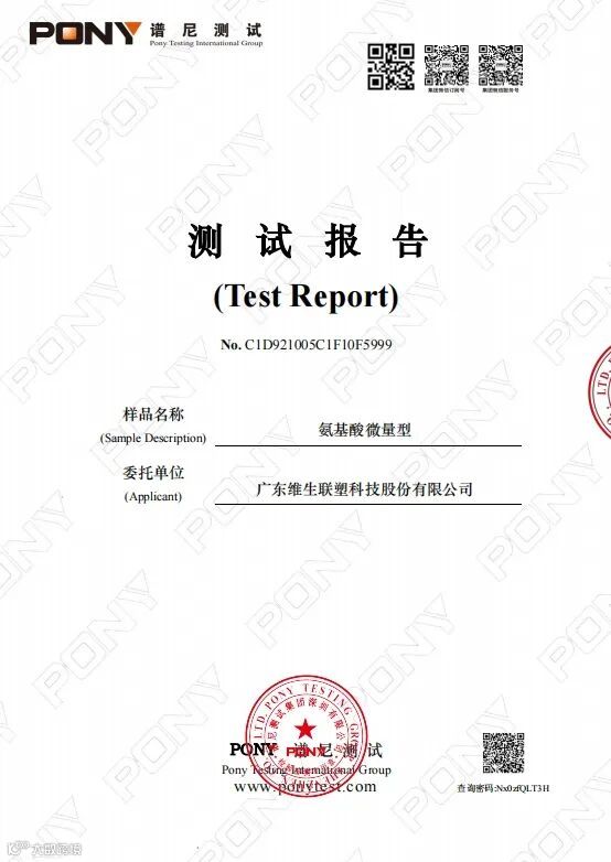 注:惠丽健微量元素型第三方检测结果中标注的单位是g/100g(%),液体肥料产品指标含量是以g/L为单位的,所以上述测试结果的值还需要进行单位换算,换算公式为测试结果*10*1.26(密度),比如表中氨基酸总量是42.9g/100g=42.9×10×1.26(g/L)=540.5g/L。