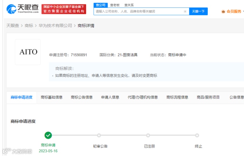 5月29日消息,根据工商信息显示,近日。华为技术有限公司申请注册多个“AITO”商标,据悉,AITO问界是华为生态汽车品牌,华为提供电动化、智能化零部件等核心软硬件技术。