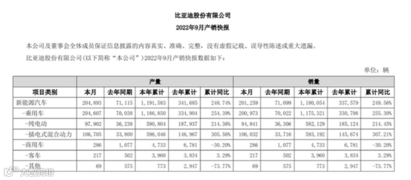 当然,如此亮眼的业绩离不开比亚迪新能源汽车销量暴涨。9月,比亚迪新能源汽车销量20.13万辆,同比增长183.07%。1—9月,比亚迪新能源汽车累计销量118万辆,同比增长249.56%。同时,比亚迪2022年9月新能源汽车动力电池及储能电池装机总量约为8.61GWh,今年前三季度累计装机总量约57.49GWh。