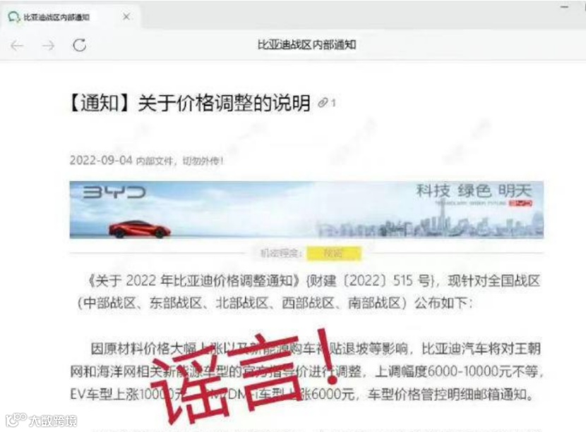 对此,比亚迪品牌及公关事业部总经理李云飞在微博公开回应称,“网传比亚迪将要上调售价,为不实信息!我们将对造谣源头,追究法律责任!请大家不信谣,不传谣!”