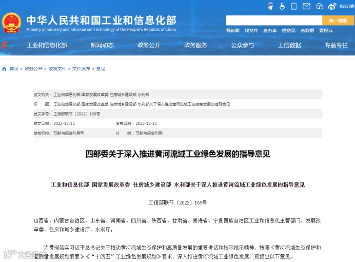 据中工汽车网获悉,12月12日,工业和信息化部、国家发展改革委、住房城乡建设部、水利部联合发布《关于深入推进黄河流域工业绿色发展的指导意见》。其中,点名指出:要鼓励建设再生资源高值化利用产业园区,推动企业聚集化、资源循环化、产业高端化发展。推动山西、四川、陕西等省、区积极落实生产者责任延伸制度,强化新能源汽车动力蓄电池溯源管理,积极推进废旧动力电池循环利用项目建设。
