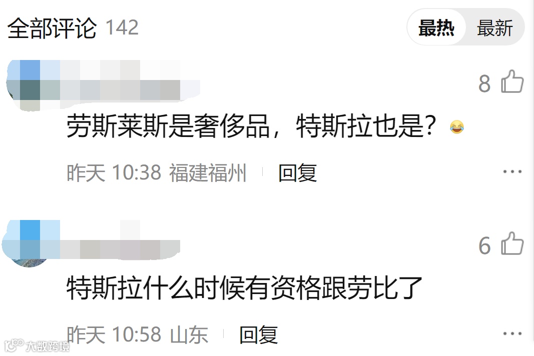 不过,更多的网友对此表示了震惊,“劳斯莱斯是奢侈品,特斯拉也是”,“特斯拉什么时候有资格和劳斯莱斯比了”。目前,针对该事故的具体情况,特斯拉方面回应:相关工作人员在沟通和跟进。