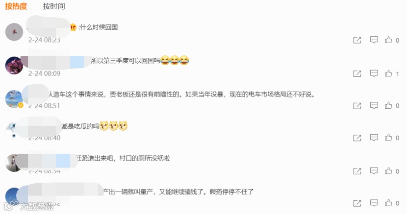 公开数据显示,FF 91搭载的是一台马力高达1050匹的驱动电机,峰值扭矩超过1800Nm,2.39秒便可完成百公里加速,续航超过700km。早在去年7月起就已接受预定,预订金额为5万元,售价为200万人民币。但从直播获得的评论来看,大众对贾跃亭并不买账。