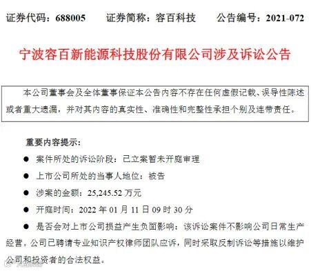 若容百科技败诉,将对其营业收入及企业口碑产生重大影响。