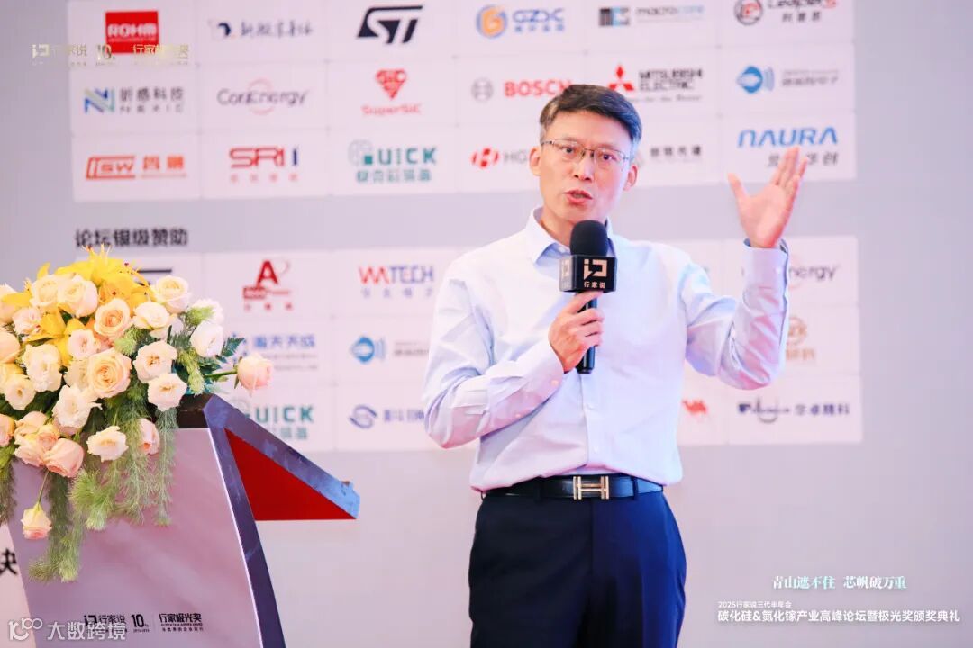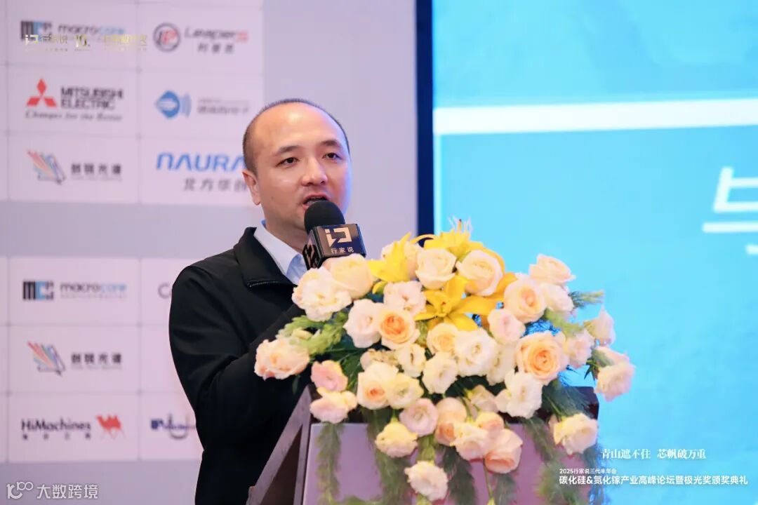 海目芯微董事长蒋绍毅在大会上发表《坚守·破局 与客户共创碳化硅制造新未来》主题演讲,围绕SiC长晶及配套装备的最新技术进展、装备生态构建路径以及产业协同新模式等进行深度分享。