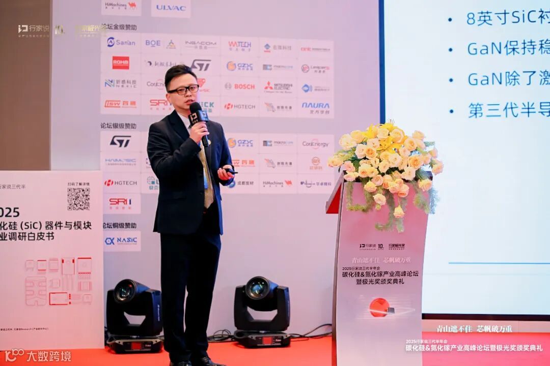 英搏尔电驱CTO刘宏鑫在大会上发表《从价格战到价值战,第三代功率半导体赋能新能源汽车产业升级》主题演讲,重点分享其如何利用SiC/GaN技术开发更高效的电驱及电源系统。