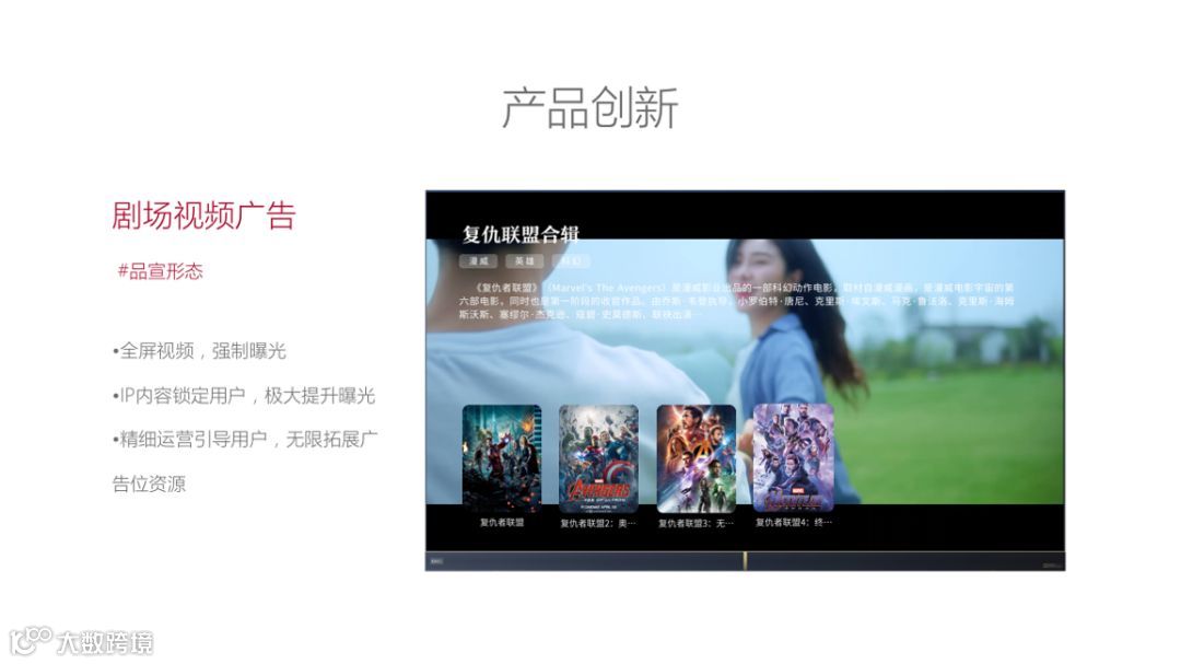 3.虹魔方首发的剧场视频广告,有两个形态:一个是品宣形态,用户进到剧场之后,广告视频全屏播放,强制曝光,播放完毕后自动消失。通过虹魔方的精细化运营的能力,结合到很多热门的大的IP影视内容,我们可以高效地引导用户到剧场里来,极大地提升用户浏览量。而且结合优质内容的推荐,用户接受度和好感度都很高。另外一个是品效形态,我们认为“品”和“效”不是二元对立的,“效”包含有效率和效果两层意义。现在大家所认为的品宣类的广告,通过虹魔方数据系统、标签体系和场景投放的支撑,已经包含有效率的成分,可以为广告主找到准确的目标群体。如果有一些广告客户需要我们支持购物转化,我们也做了很多细节工作,比如一键成交,能够支持以最短的路径来购买,或最短的路径获得消费决策的依据。因为用户在操作流的各个节点都有不同程度的流失,所以支持跳转到电子商城仅仅是支持购物转化的基础功能,在打动TA以后的最短路径操作,才是关键。