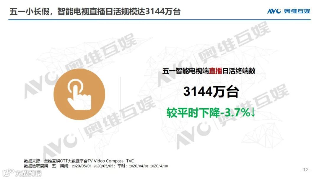 35.1%的智能电视开机用户选择观看直播节目,直播日活终端规模达3144万台,较平时下降3.7%。