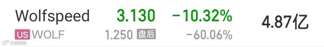 本周三,Wolfspeed 股价一度下跌10.17%,跌至3.14美元(约22.66元RMB)。过去六个月,该公司股价已下跌逾 70%。