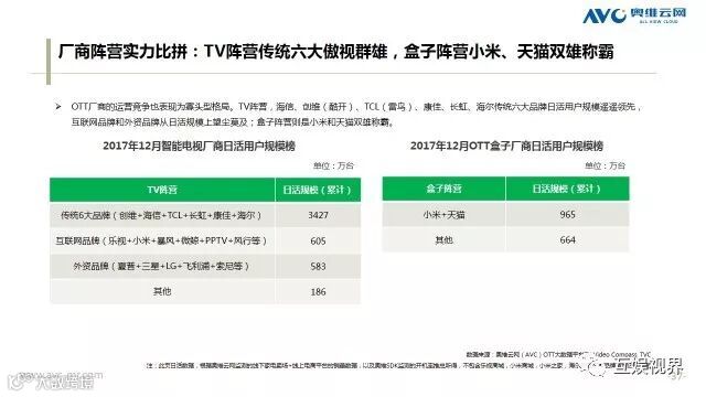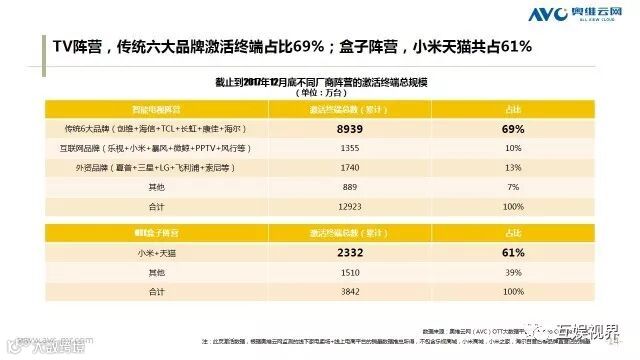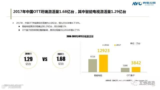 2017 年刚刚过去,在过去的这一年,尽管OTT硬件经营遭遇多重冷风吹,但以OTT大屏为核心的客厅经济仍在2017迎来爆发期,吸引了互联网巨头、内容方、广告主、数据监测等企业多种合作与市场拓展。截止至2017年12月底,OTT终端激活量已达1.68亿台。用户能这些数字的背后看到什么?市场又将是怎样的风云变幻呢?