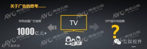 演讲最后,李晔用一张图给大家做了一个思考。2015年,传统电视仅广告市场规模就超过千亿元,而OTT端市场规模尚不及其二十分之一。虽然同为电视大屏,但其市场营销价值差距巨大,这不仅说明了OTT端增强影响力、扩大对品牌营销价值是当务之急,同时也体现出OTT端巨大的可上升空间。OTT互联网市场现已经初具流量基础,并随终端规模扩大而不断增强。OTT端必将演变成一个巨大的内容和产品服务平台,成为品牌与家庭沟通并提供商业服务的重要桥梁。