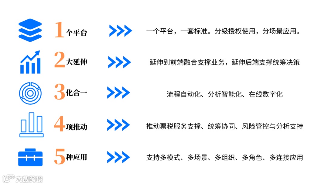 数字化税务管理平台,向外“延伸”集成/赋能,打破“烟囱式”信息化架构,实现“插座式”服务平台,支撑一系列前端应用系统,彻底解决信息孤岛问题,提升数据转换效率和质量;根除重复建设企业信息化系统的现象,为企业智慧管理带来更多便利。