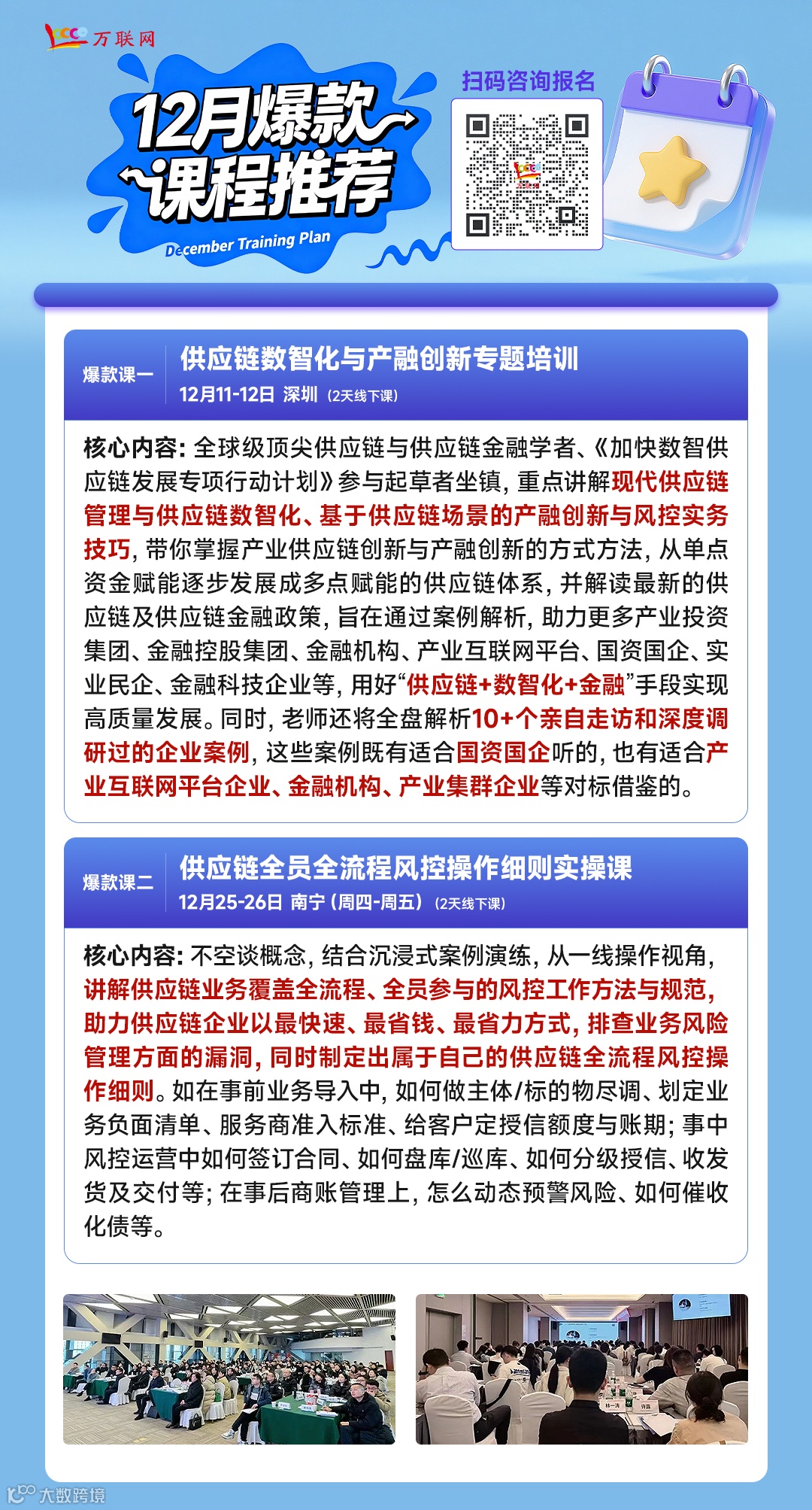 所以,为助力各国企(供应链公司、商贸/物流公司、城投、产投、园区国企、投融资公司、金控)摆脱“纯垫资贸易模式”,联动银行及生态各方(金融科技公司等),共同设计创新供应链金融产品,构建生态化供应链金融平台,实现合规增收增利,我们与世界级顶尖供应链与供应链金融学者、商务部市场调控专家库专家、国办84号供应链新政参与制定者、《加快数智供应链发展专项行动计划》起草参与者、数十家国内知名企业导师【宋教授】联袂打造了“供应链产融创新专题培训”,计划于2025年12月11-12日在深圳开班!希望借此课程,并结合16大供应链产融创新案例解析+1场案例分组研讨,帮助国企把握供应链金融前沿趋势和监管要求,摆脱纯粹垫资模式,深度嵌入产业场景,构建生态化供应链金融平台,助力本地实体经济及自身实现合规、低风险、高质量的发展!
