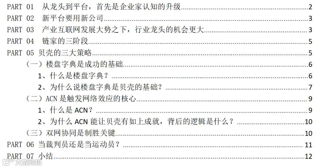 (3)真革自己的命:链家不仅是贝壳的天使投资,还是其天使用户、提供了天使业务。贝壳平台打法就是要革链家的命,能将内部资源从链家平稳、顺利地过渡给贝壳,让贝壳成长,这是非常值得我们学习的;平台积累信息的速度和容量远超龙头,掌握信息意味着拥有更多的盈利机会,如果贝壳积累的信息被链家用来自营盈利的话,平台就是一个伪概念,经得起诱惑,坚定走平台之路,这一种文化和制度安排也是非常值得学习的!