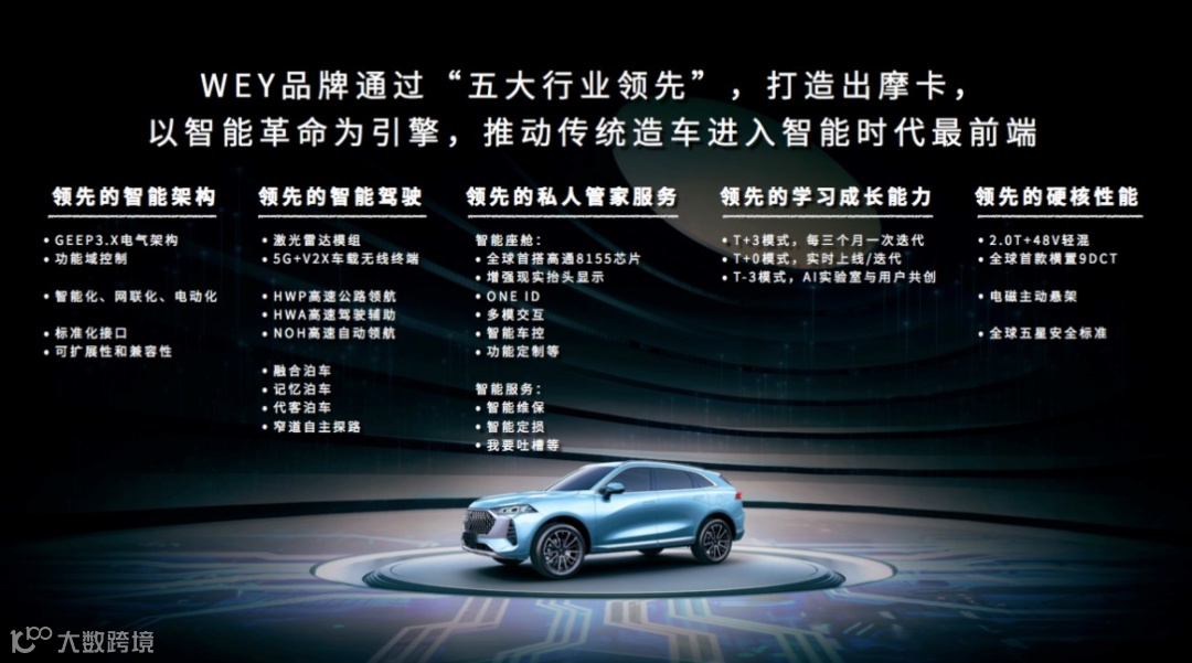 WEY品牌自诞生以来,始终坚持“过度投入、过度研发”的理念,在智能科技领域不断探索、持续突破,特别是长城汽车最先进造车理念和最领先造车技术的加持之下,使得WEY品牌真正具备主导新一轮智能化变革的底气。