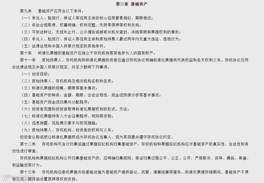 2、在对存托机构的相关规定中,《意见稿》中的“信誉良好,最近三年内无重大违法、违规行为”改为了《管理办法》中的“信誉良好,最近两年内无重大违法、违规行为”;在对承兑人、贴现行、保证人等信用主体和原始持票人的相关规定中,“最近三年内无重大违法、违规行为”也更改为了《管理办法》中的“最近两年内无重大违法、违规行为”,无论是对存托机构还是参与方的审核标准,《管理办法》都进行了适度降低,加大和拓展市场参与度。