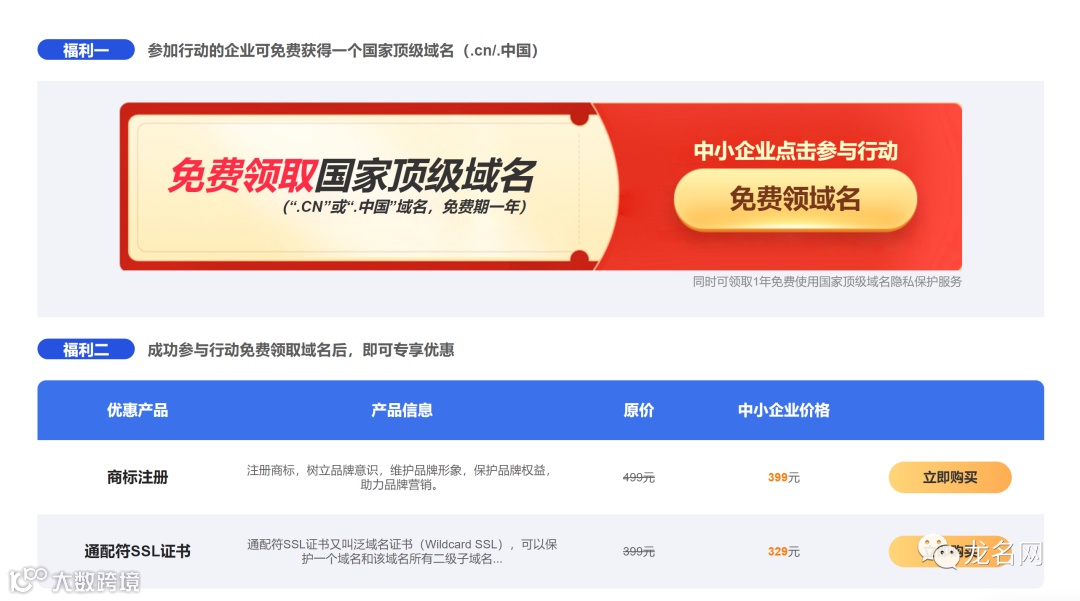 注册、通配符SSL证书等在内的多款产品优惠折扣。
