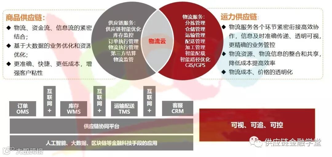 物流金融过程中的第二个关键问题,我认为应该从技术入手,基于监管信用、主体信用和交易信用的基础上,结合物联网+云计算、大数据分析、FWMS的金融仓储信息化管理和FTMS的金融运输信息化管理等金融与物流技术形成对它交易的监管,形成可视、可追、可控的管理思路,这是我们讲的最关键的切入点。