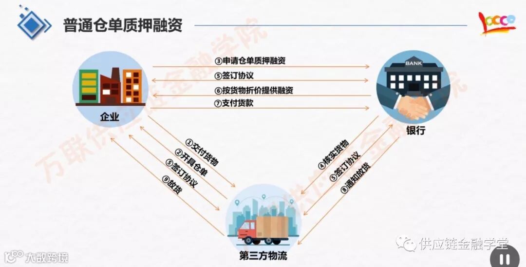 仓单质押融资也就是把仓单质押给银行,从银行那里获得借贷融资。但是这里需要说明一点,仓单属于有价证券,所以能够开具仓单的仓库或者物流公司,都需要很高的资质。