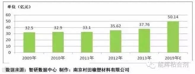 热熔胶在包装以及非刚性黏接领域将保持平稳增长,在汽车、胶带以及建筑行业将实现较高增长,预计2013-2019年,市场规模将从37.76亿美元增长到50.14亿美元,年复合增长率达到 5%。