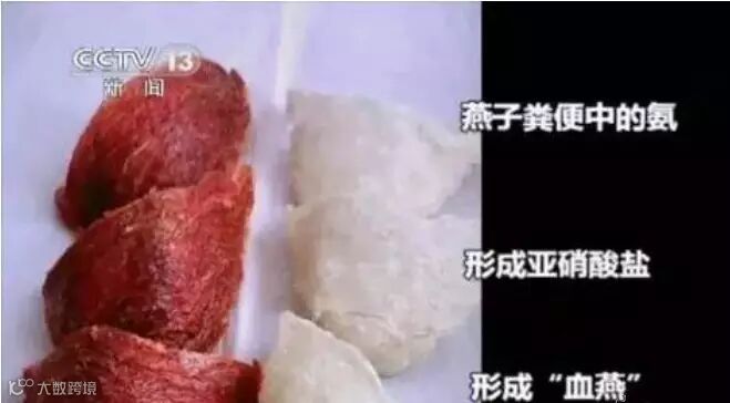 2012年8月15日,浙江省工商局网站发布信息称,在针对流通领域的食品质量抽检中,发现血燕产品普遍存在亚硝酸盐含量严重超标问题,问题血燕主要来自马来西亚。动辄上万元一两的血燕,被爆出是经染色制成的,而且部分血燕有害物质亚硝酸盐超标350倍,甚至重量还是用鱼胶、果胶、琼脂粉撑起来的。
